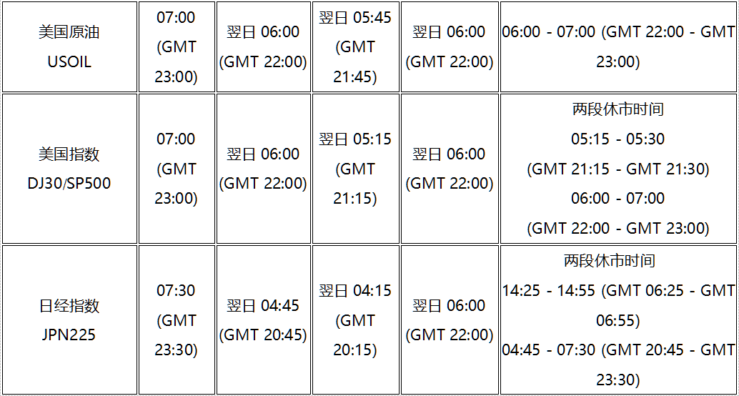 因应欧洲时区于2021年11月1日(周一)及美国时区于2021年11月8日(周一)开始分别转为冬令时间, 本公司各产品交易时间将调整为冬令时间,敬请留意。